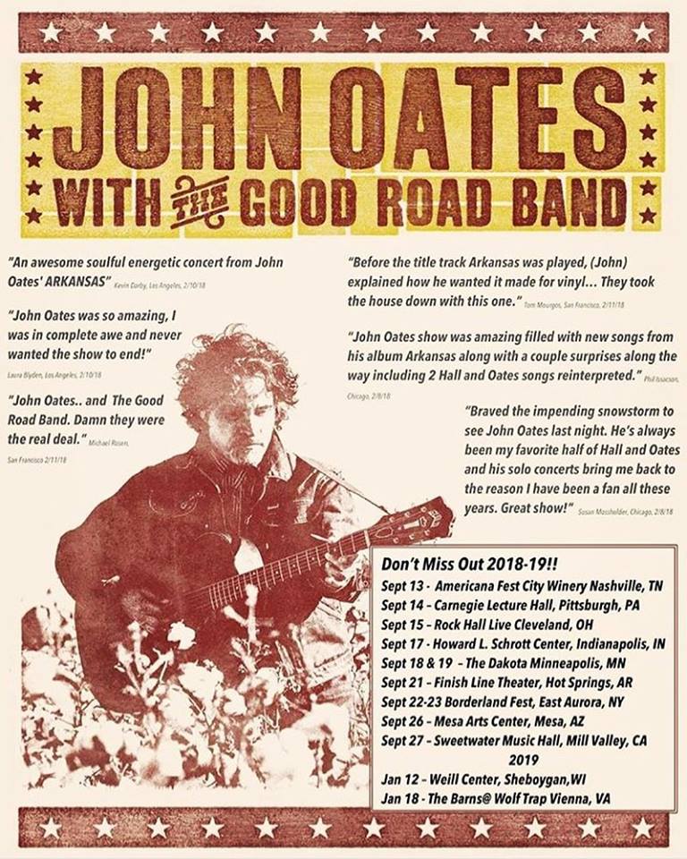 John Oates Tour Excited to hit the road with John Oates next month! If you’re in one of these towns, come on out! See you on the road, friends! Oct and Jan dates in the US, UK and Europe to be released soon!!